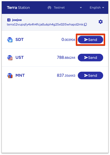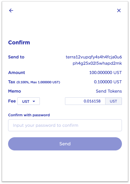 3. Select Send after setting the type and amount of tokens pay as transaction fee and entering the password.