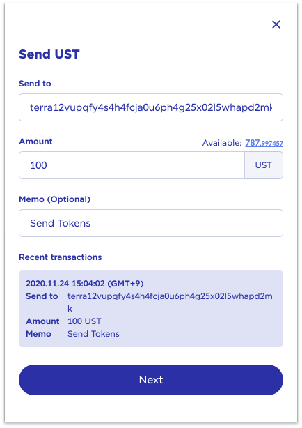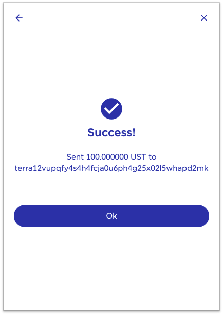 4. Once the Ledger device is connected to Terra Station Extension successfully, user can start signing transactions with their device.