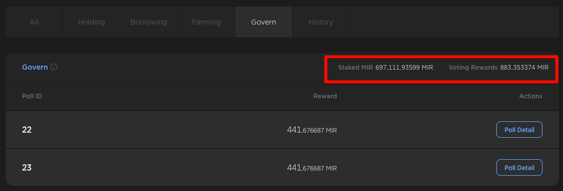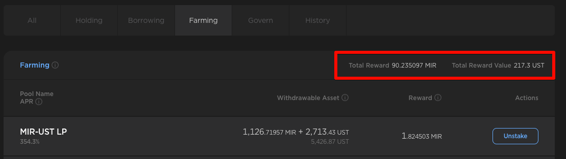 To see your rewards in more depth, you may navigate to Farming or Govern tabs to check how much reward is claimable from each category.