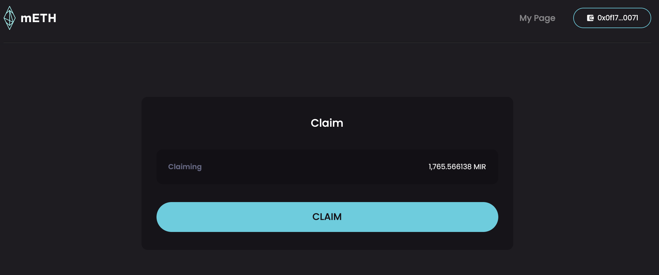 4. Select CLAIM. Metamask will prompt you to confirm and sign the transaction.