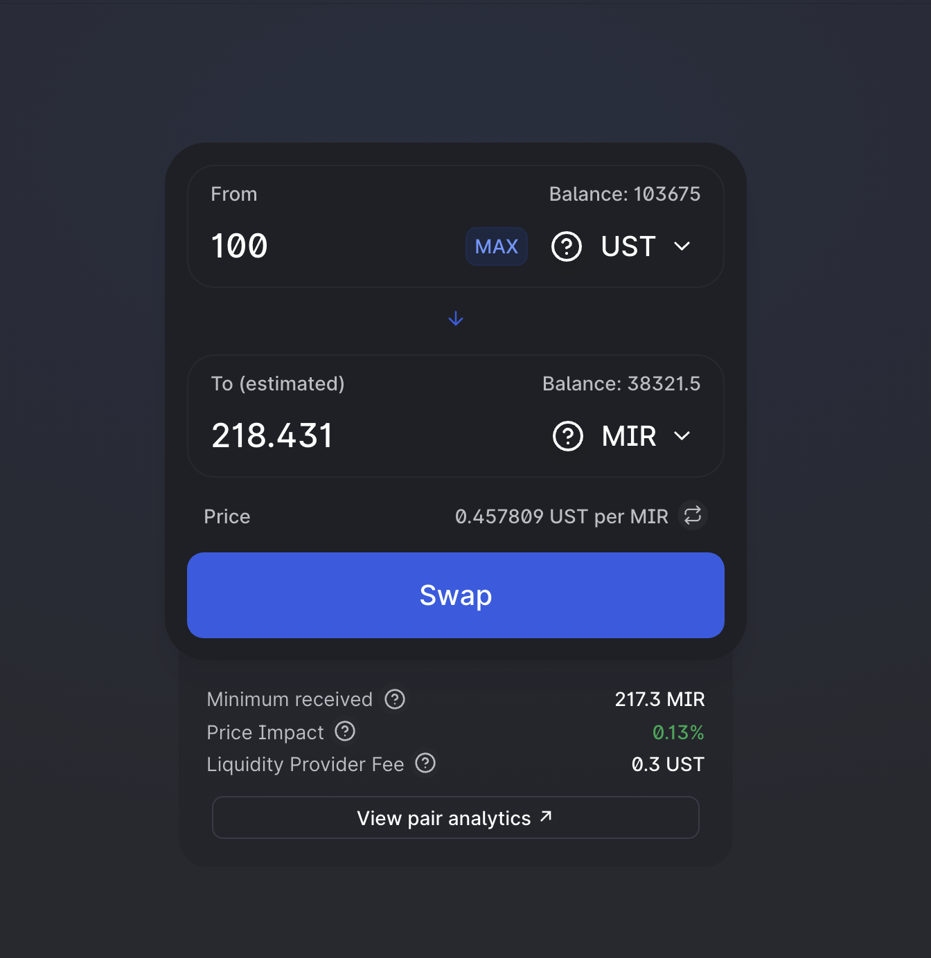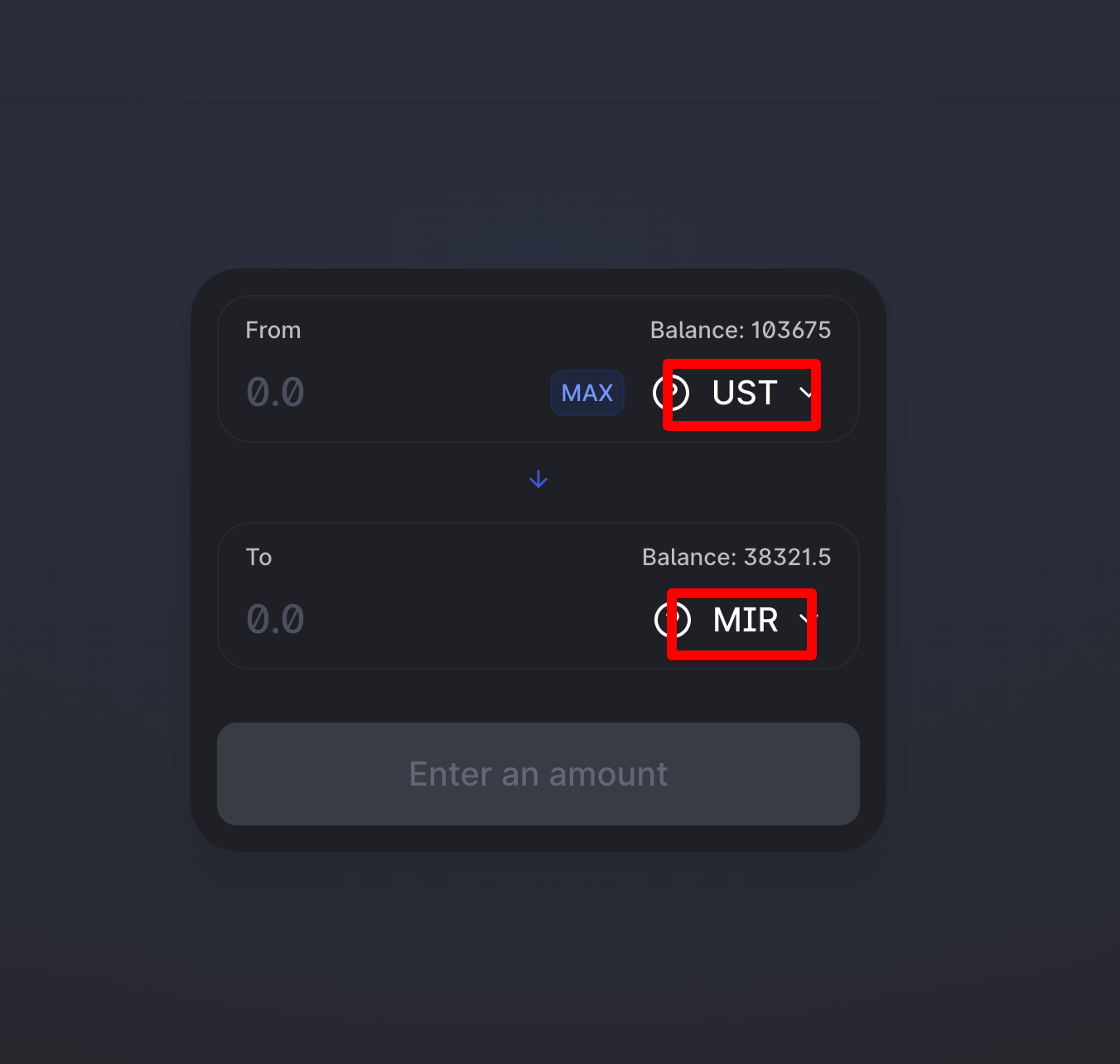 You may choose to change the direction of the trade by clicking the "↓" located between the two input fields.