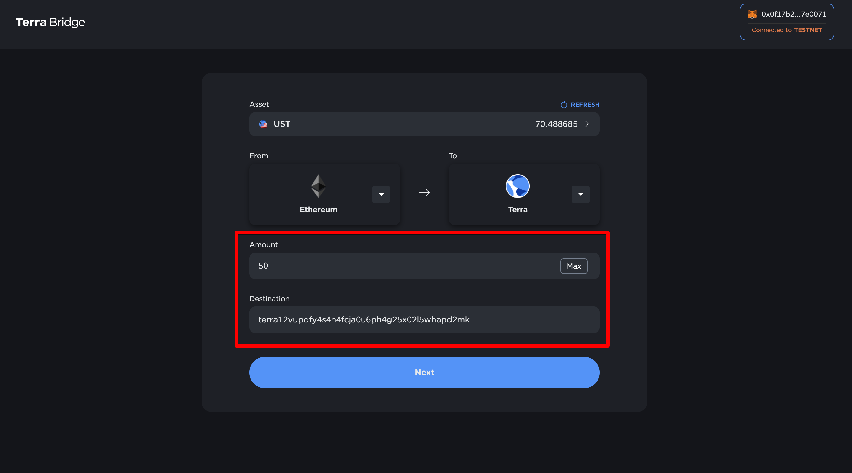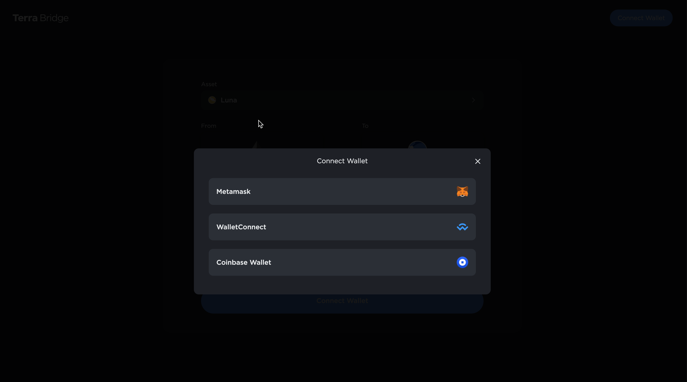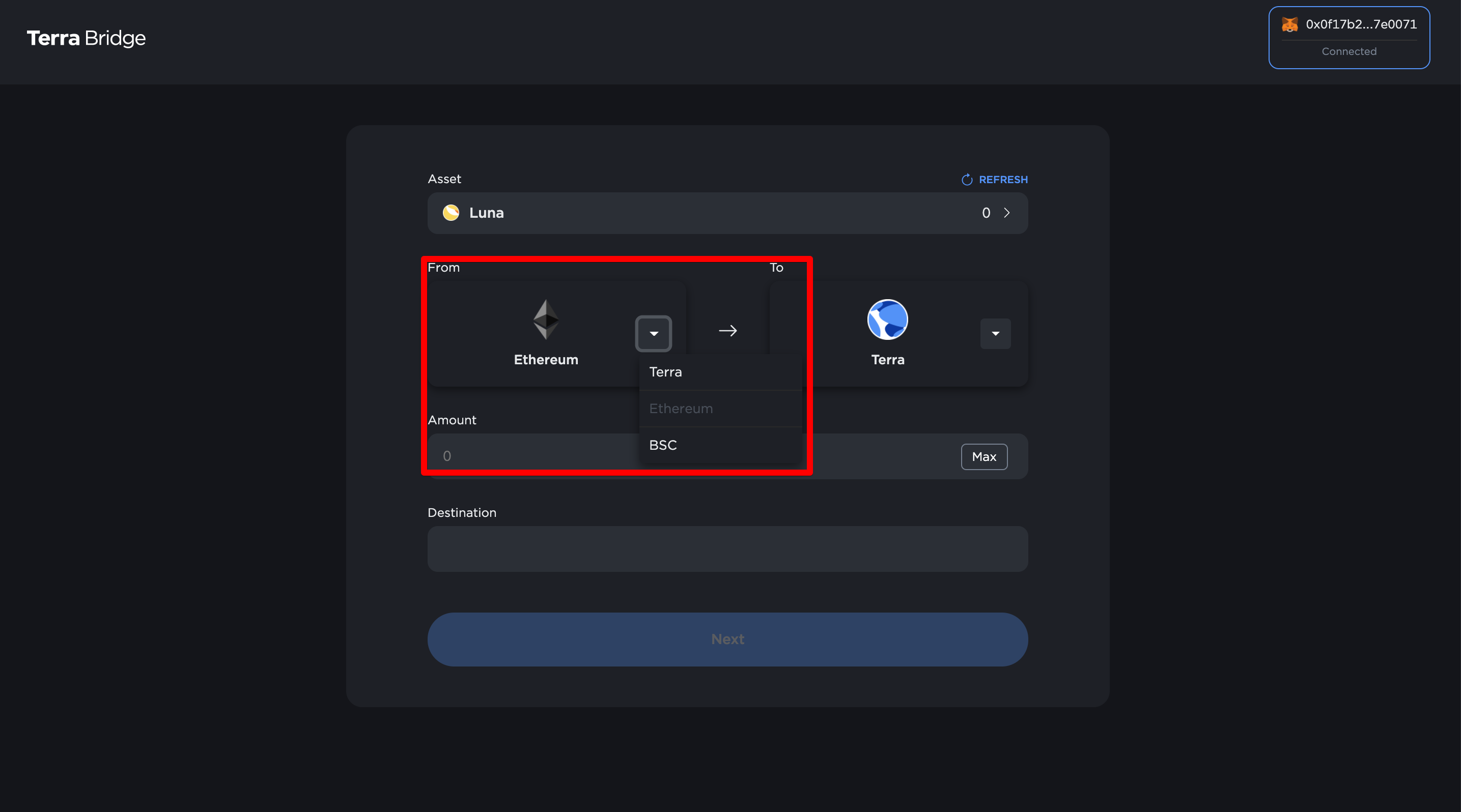 Connect Walletbutton - From the From section, select the network to transfer your tokens from.