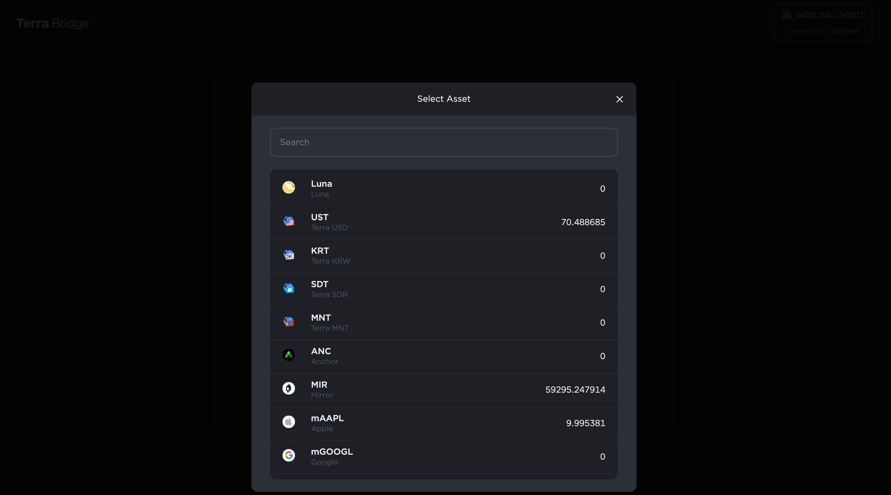 Terra Bridge enables cross-chain transfer of all tokens supported by Shuttle, including Terra native tokens, most mAssets and also other token types from Terra ecosystem.